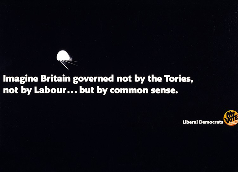 What a challenge, but what an experience and to see it printed as billboard posters and unveiled on News At Ten during an interview with the, then, Liberal Democrats’ leader Paddy Ashdown, has to be a career high for me. Since then, I’ve continued to watch the launch of the election posters with great eagerness and have been impressed, to varying degrees, with the level of creativity displayed.